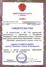 Регистрационный номер в реестре адвокатов г. Москвы № 77/9591